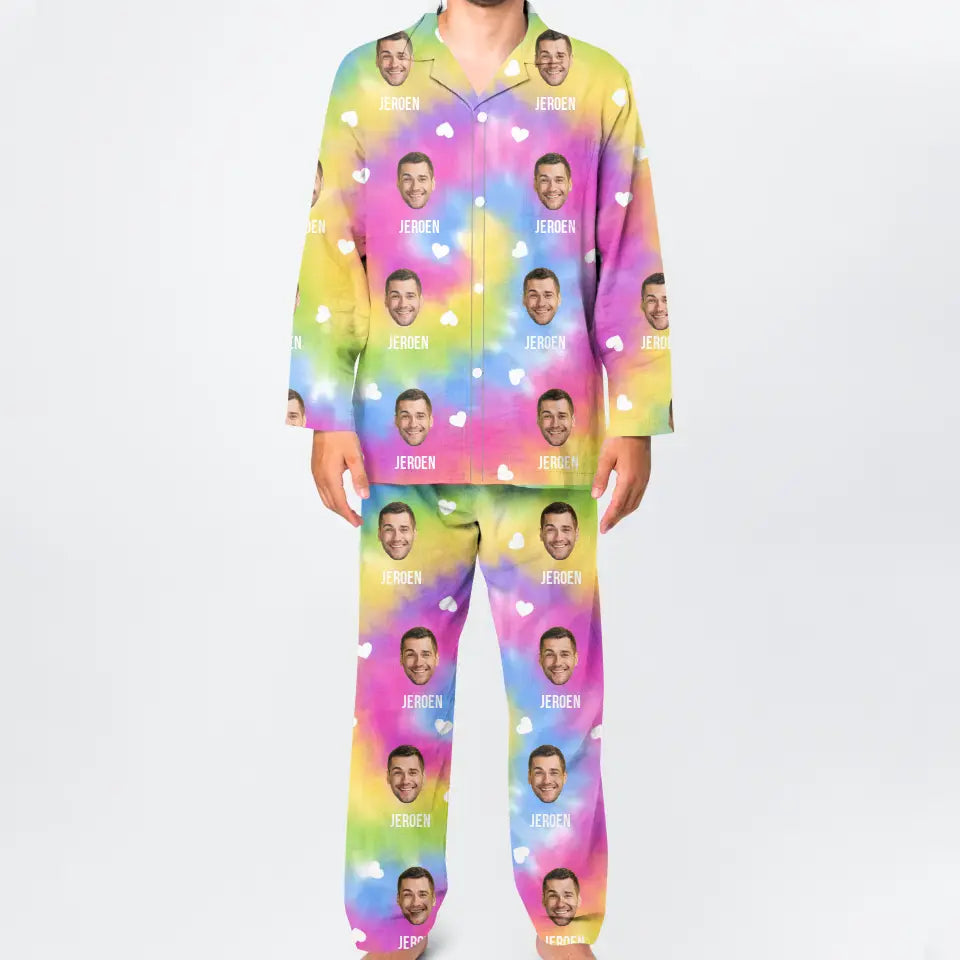 Gepersonaliseerde kleurrijke pyjama met uitgeknipte hoofden erop - Voeg tot 4 foto's en namen toe